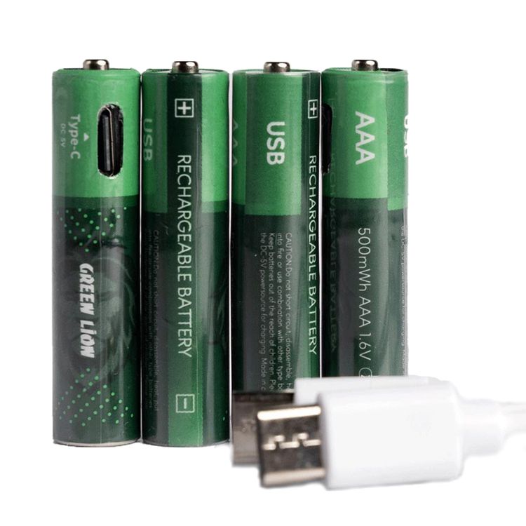 بطارية جرين ليون قابلة لإعادة الشحن AAA مع مؤشر شحن LED، طاقة 500 ملّي واط ساعة، منفذ شحن نوع C، 3-4 ساعات وقت شحن - أخضر