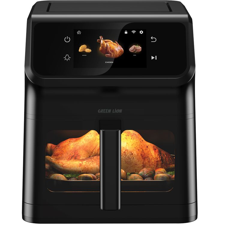 قلاية الهواء الذكية جرين ليون بسعة 6.5 لتر، وظيفة المؤقت، شاشة لمس TFT، اتصال Wi-Fi، وصفات مدمجة، دوران هواء سريع، طلاء غير لاصق، طهي بدون زيت، 12 برنامج محدد مسبقًا، وقت قلي من 0 إلى 60 دقيقة - باللون الأسود.