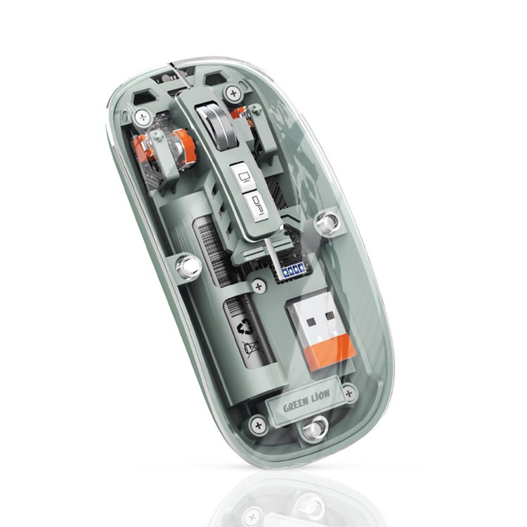 ماوس لاسلكي شفاف من جرين ليون 2 مع 5 أزرار، يتصل بما يصل إلى 3 أجهزة في وقت واحد، بطارية قابلة لإعادة الشحن بسعة 500 مللي أمبير، مدى اتصال يصل إلى 10 أمتار، التوصيل والتشغيل - أخضر