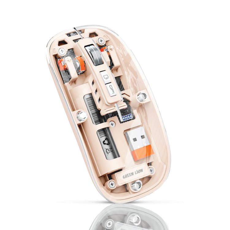 ماوس لاسلكي شفاف من جرين ليون 2 بخمسة أزرار، يتصل بما يصل إلى 3 أجهزة في نفس الوقت، بطارية قابلة لإعادة الشحن بسعة 500 مللي أمبير، نطاق مسافة 10 أمتار، تشغيل وتوصيل - وردي