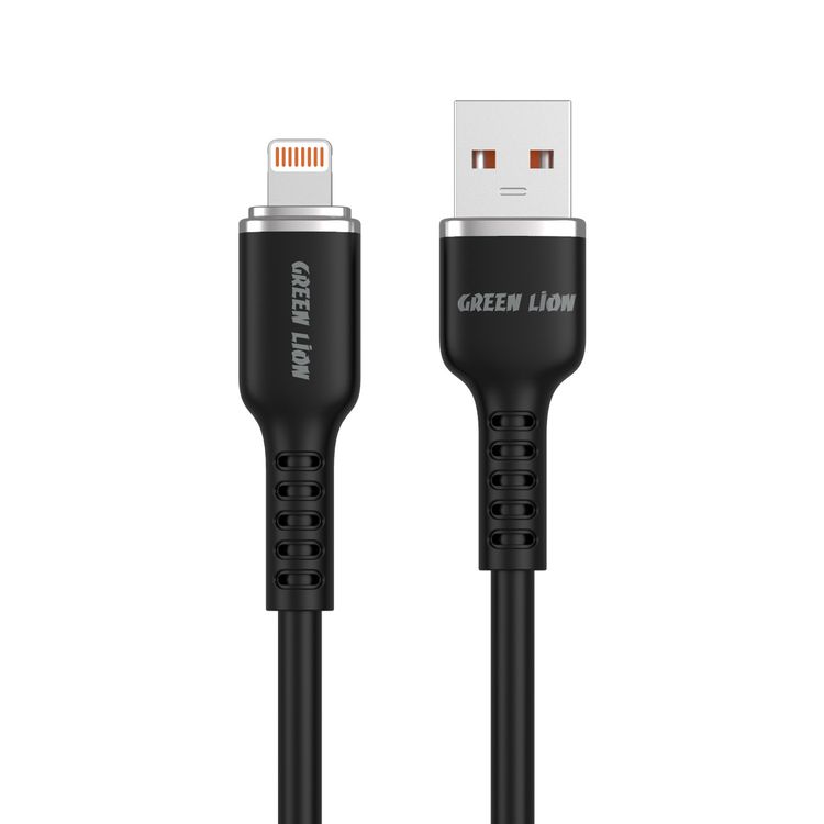 كابل سيليكون USB-A إلى Lightning بطول 1 متر من Green Lion، سرعة نقل 480 ميجابت في الثانية، 12 وات، شحن ومزامنة، عمر افتراضي يزيد عن 10000 ثنية، آمن ومضمون - أسود