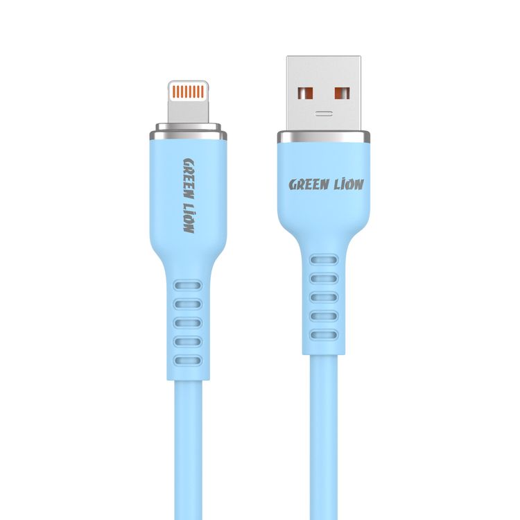 كابل سيليكون USB-A إلى Lightning بطول 1 متر من Green Lion، سرعة نقل 480 ميجابت في الثانية، 12 وات، شحن ومزامنة، عمر افتراضي يزيد عن 10000 ثنية، آمن ومضمون - أزرق