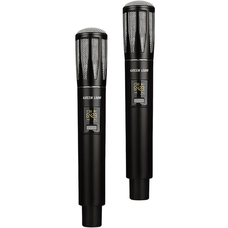 ميكروفون لاسلكي مزدوج من Green Lion مع نوع ميكروفون ديناميكي، سعة بطارية 800 مللي أمبير، بطارية ليثيوم قابلة لإعادة الشحن، منفذ شحن من النوع C، وقت عمل من 2 إلى 5 ساعات، ميكروفون لاسلكي، شاشة LCD، توصيل وتشغيل - أسود