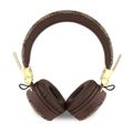Guess سماعات رأس لاسلكية 4G جلد PU مع شعار معدني - بني