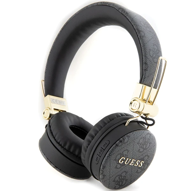 Guess سماعات رأس لاسلكية 4G جلد PU مع شعار معدني - أسود