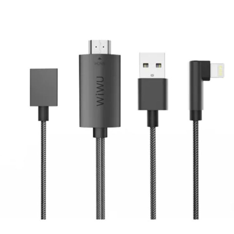 - تحتاج إلى توصيل هذا الكبل من iPhone (منفذ Lightning) وتلفاز LCD / LED (منفذ HDMI) ومحول مصدر الطاقة (منفذ USB)