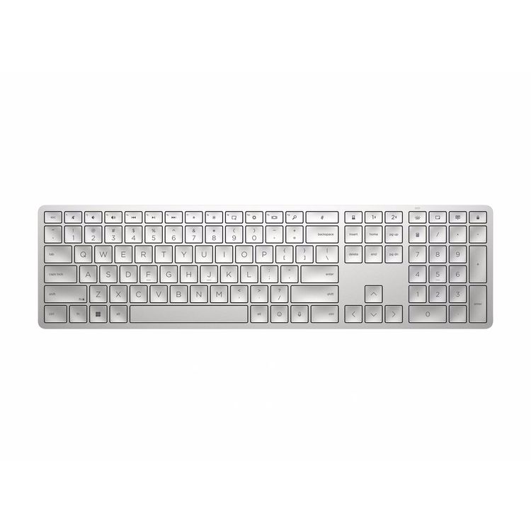لوحة مفاتيح HP 970 قابلة للبرمجة وقابلة لإعادة الشحن لاسلكياً، بطارية قابلة لإعادة الشحن تدوم طويلاً، خيارات اتصال متعددة، تصميم مريح - فضي