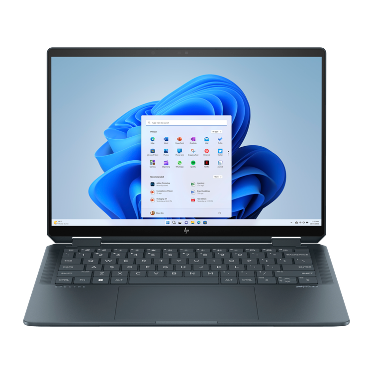 كمبيوتر محمول HP Spectre x360 - معالج Intel Core Ultra 7 155H، وذاكرة وصول عشوائي LPDDR5x سعة 16 جيجابايت، ومحرك أقراص SSD سعة 1 تيرابايت، وبطاقة رسومات Intel Arc، وشاشة OLED بدقة 2.8K (2880 × 1800)، وتردد 120 هرتز، ونظام التشغيل Windows 11 Home - أزرق داكن
