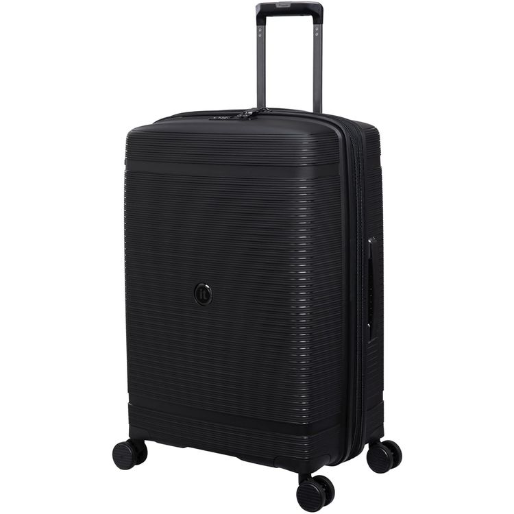 حقيبة سفر من شركة it Luggage Unanimous متوسطة الحجم، مصنوعة من مادة البولي بروبيلين، حقيبة سفر صلبة للجنسين، عجلات دوارة 8x360 درجة، حقيبة عربة قابلة للتوسيع، قفل من نوع TSA، حقيبة خفيفة الوزن - أسود