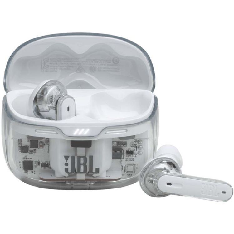سماعات JBL Tune Beam True اللاسلكية داخل الأذن مع ميكروفون، مقاومة للماء والغبار IP54، بلوتوث 5.3، بطارية ليثيوم أيون بوليمر - أبيض شبحي