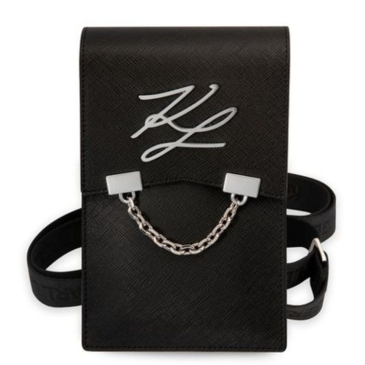 محفظة كارل لاغرفيلد مع سلسلة وشعار معدني موقّع - أسود