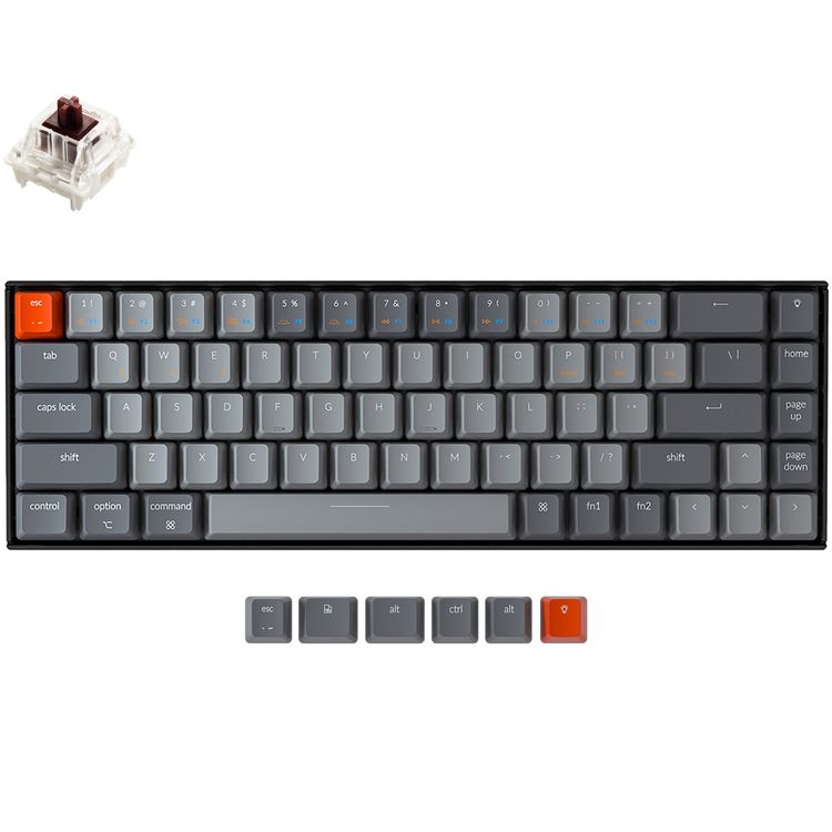 كيكرون K6 لوحة مفاتيح ميكانيكية سلكية للألعاب تعمل بالبلوتوث / يو اس بي 68 مفتاحًا ، مدمجة 65٪ تخطيط ار جي بي بإضاءة خلفية مفتاح التمدد ليد إطار ألومنيوم لنظام التشغيل ويندوز ماك ، مفتاح جاتيرون بني