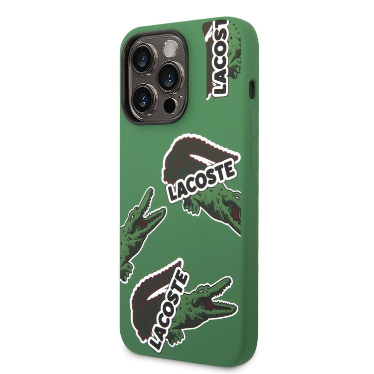 Lacoste Hard Case Liquid Silicone / Microfiber Allover Pattern Compatible with iPhone 14 Pro - Green