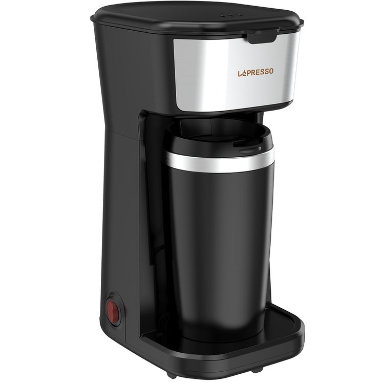ماكينة صنع القهوة LePresso بقدرة 450 واط مع كوب للسفر - أسود
