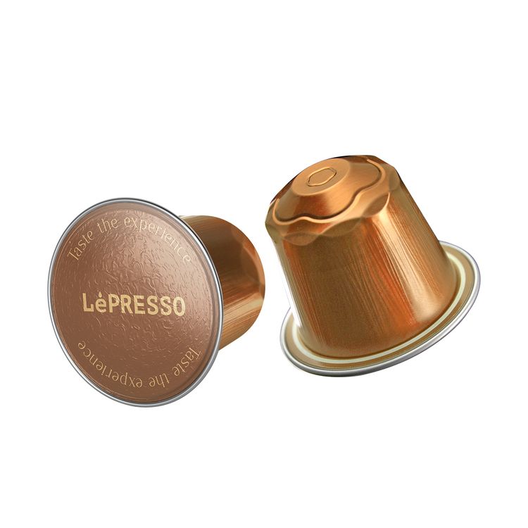 كبسولات LePresso ألومنيوم 100% أرابيكا لماكينات نسبريسو مع شدة قهوة بمستوى 7، بنكهة زهرية وخشبية خفيفة، مستوى تحميص متوسط، تشمل 10 كبسولات - ذهبي