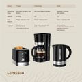 طقم إفطار من LePresso، محمصة، غلاية وماكينة صنع القهوة بالتنقيط، إيقاف التشغيل التلقائي، وظيفة الحفاظ على الدفء، عنصر تسخين من الفولاذ المقاوم للصدأ - أسود