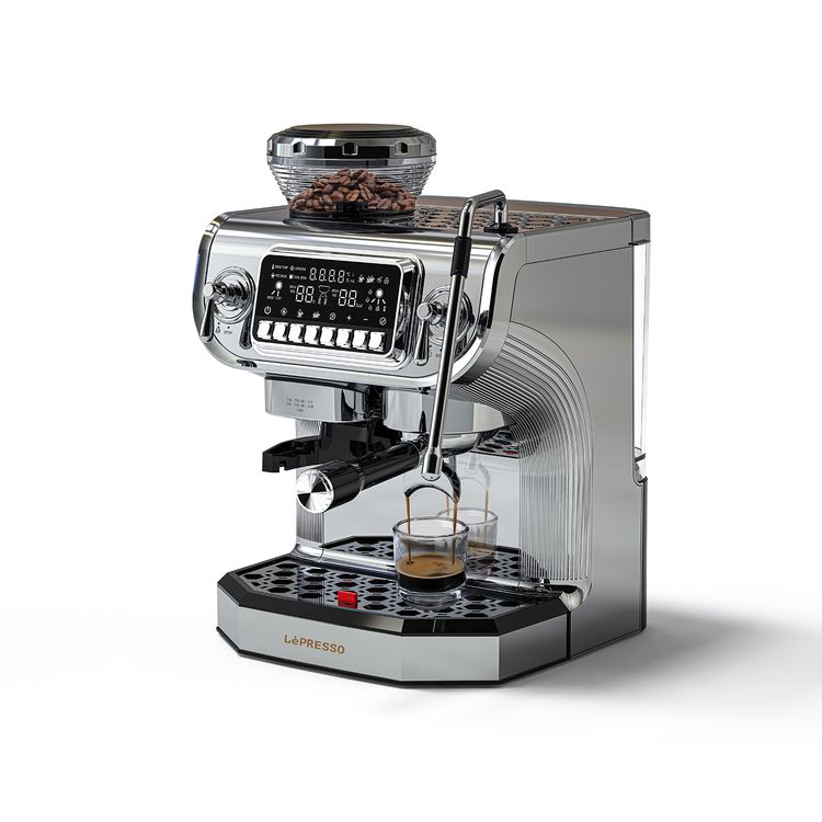 ماكينة إسبريسو LePresso Dual Boiler مع مطحنة ومبخرة، قوة تسخين 2672 واط، سعة خزان الماء 2 لتر، قوة طحن 150 واط، شاشة رقمية، موزع ماء ساخن، حجم فلتر 58 مم - فضي
