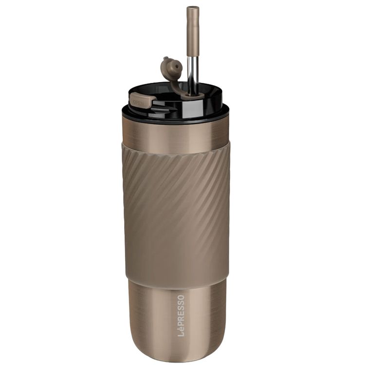 كأس حراري ليبريسو مع مصفاة للتسريب، سعة 520 مل، يشمل قشة قابلة لإعادة الاستخدام، يحفظ البرودة لمدة 10 ساعات، ويحتفظ بالحرارة لمدة 8 ساعات، مكونة من فلتر شاي، هيكل من الفولاذ المقاوم للصدأ، خفيف الوزن ومحمول - ذهبي
