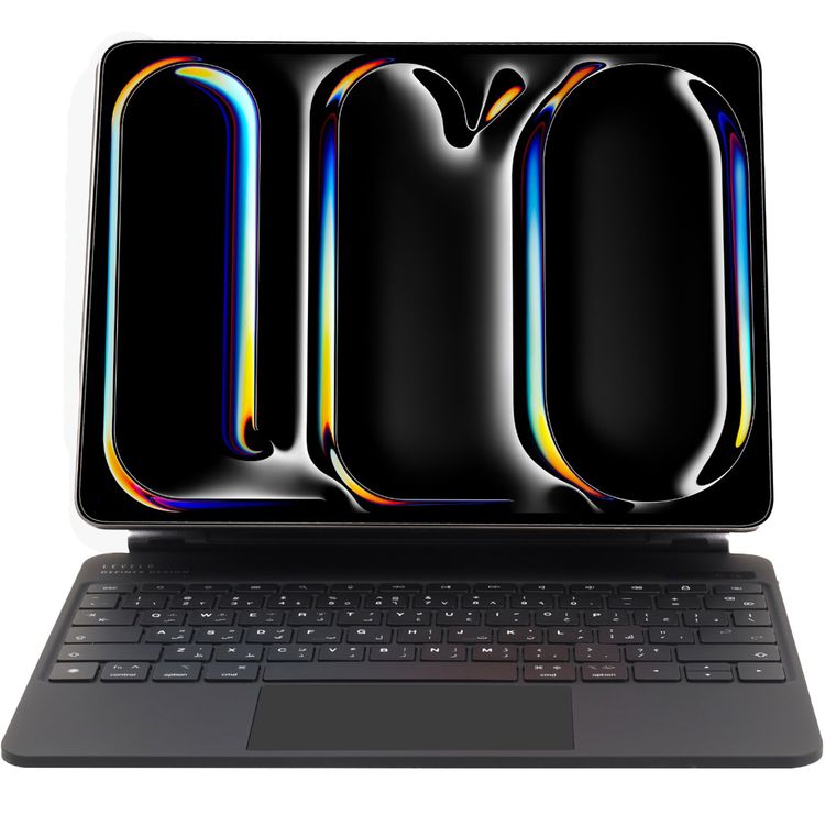 لوحة مفاتيح لاسلكية من الجلد من Levelo AeroBoard Saffanio لجهاز iPad Pro 13" 2024، عمود من الفولاذ المقاوم للصدأ الفاخر، وقت استعداد 300 ساعة، مسافة اتصال 10 أمتار، 500 مللي أمبير في الساعة - أسود