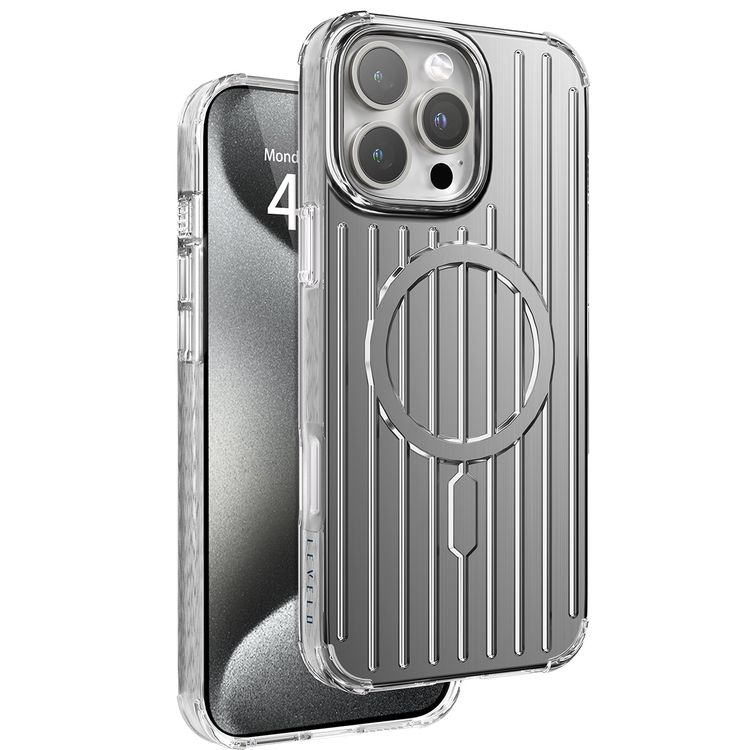 حافظة Levelo Cabin Magsafe لهاتف iPhone 16 Pro Max بزوايا مقاومة للصدمات، ومقاومة للخدش 2H، ومضادة للاصفرار، ومواد TPU متينة - فضي