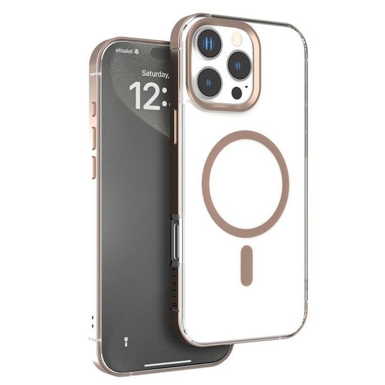 كفر حماية Levelo Claire Magsafe مع حفاظ ممتص للصدمات من الألومنيوم لهاتف iPhone 16 Pro Max، حفاظ هجين، متوافق مع MagSafe - تيتانيوم ذهبي وردي