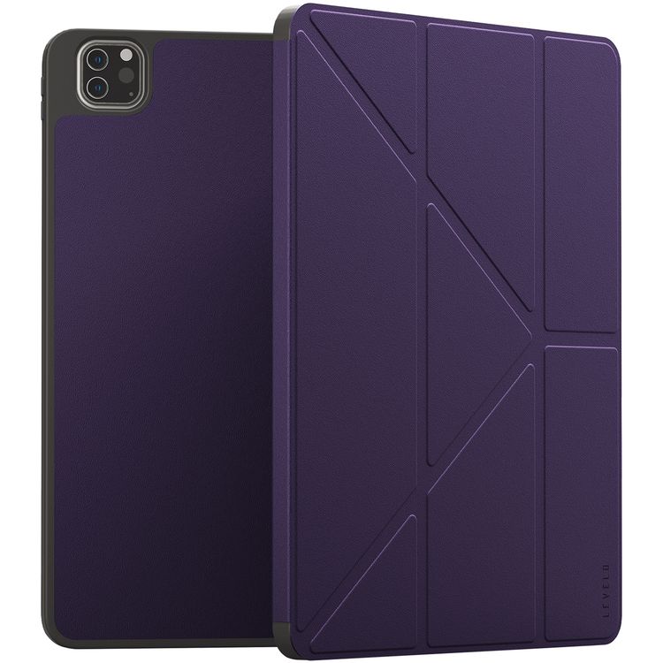 غطاء جلد هجين من Levelo Elegante لجهاز iPad Pro من الجيل الرابع إلى السادس، بوضعية عمودية وأفقية، غطاء ممتص للصدمات، حماية 360 درجة، سهولة التركيب، فتحات دقيقة - اللون البنفسجي.