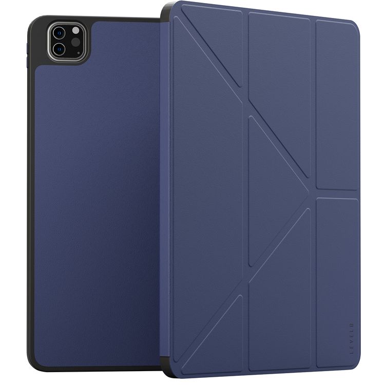 غطاء ليڤيلو إيليجانتي الهجين من الجلد لجهاز آيباد برو 11" (من الجيل الرابع إلى السادس)، قطع دقيقة، سهل التركيب بالنقر المفرد، اتجاه عمودي ووضع أفقي، غطاء ممتص للصدمات، حماية بزاوية 360° - أزرق