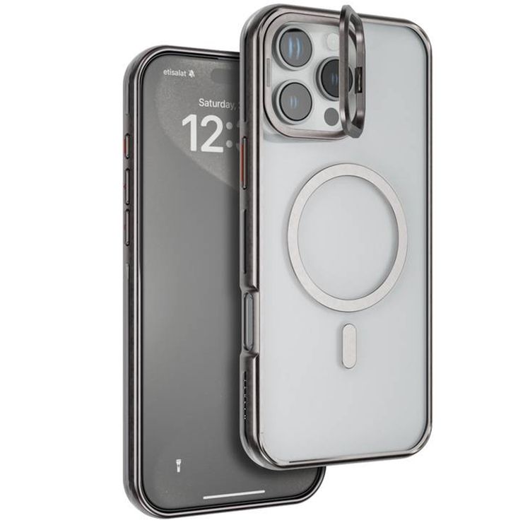 كفر حماية Levelo Elio PC مع حامل حلقي للكاميرا لهاتف iPhone 16 Pro Max، حامل مدمج، متوافق مع MagSafe - تيتانيوم
