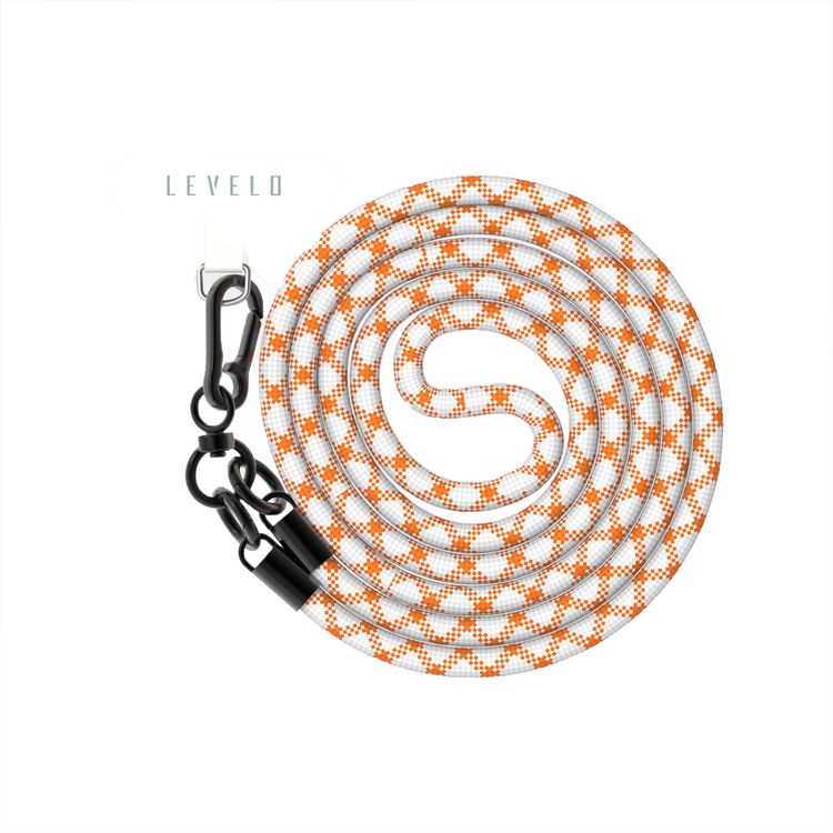 حزام الرقبة لهاتف Levelo Everly، بطول 1.2 متر، مصنوع من ألياف البوليستر، مع إنهاء معدني، مادة خفيفة الوزن ومتينة، أحزمة قابلة للتعديل، متوافق عالميًا، مادة مضادة للحساسية - برتقالي / أبيض