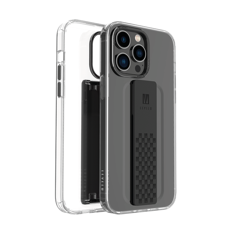 غطاء Levelo Graphia IMD الشفاف مع قبضة إضافية لهاتف iPhone 14 Pro - أسود