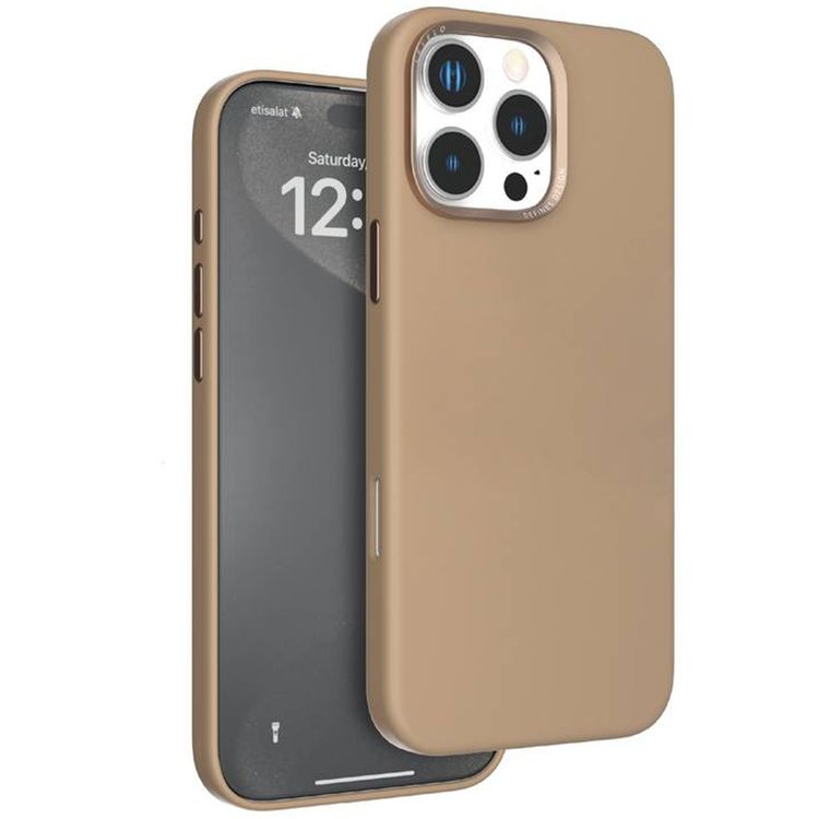 جراب Levelo Iris Magsafe Liquid Silicone لهاتف iPhone 16 Pro مع حلقة معدنية للكاميرا وزوايا مقاومة للصدمات ومغناطيس MagSafe قوي وقبضة مريحة وآمنة - تيتانيوم ذهبي وردي