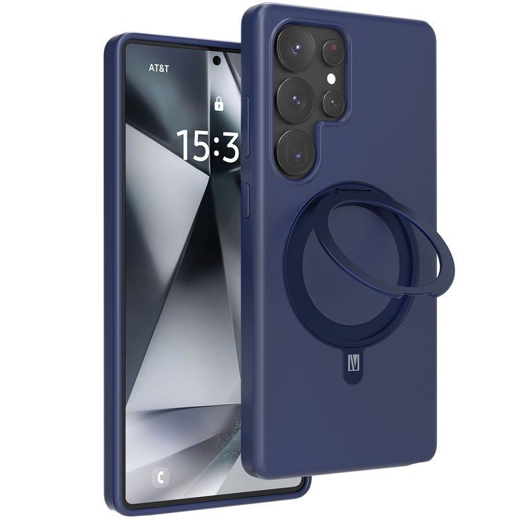 حافظة Levelo Iris Pro من السيليكون السائل متوافقة مع Magsafe لهاتف Samsung Galaxy S25 Ultra، مسند مدمج، سيليكون سائل ممتاز، زوايا مقاومة للصدمات - أزرق