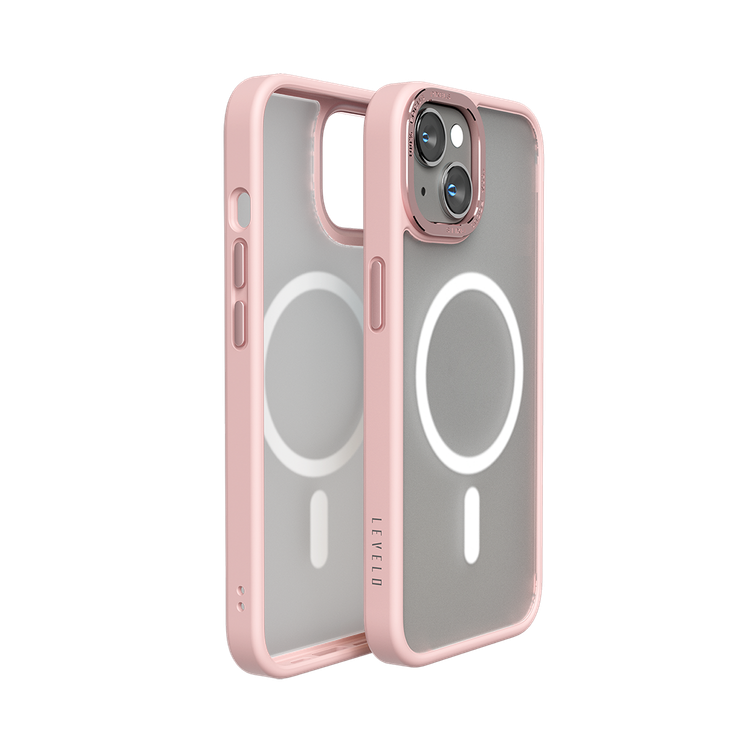 غطاء خلفي ماتي Levelo Magsafe Kayo لجهاز iPhone 14 - شفاف ماتي / وردي
