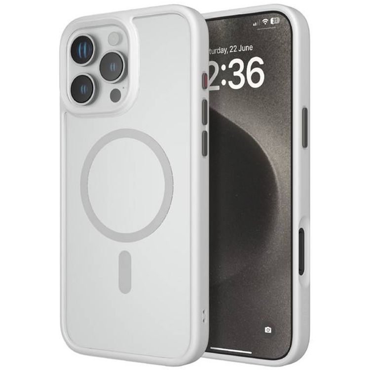 حافظة Levelo MagSafe Solo لهاتف iPhone 16 Pro، تقنية Clearview، مقاومة للخدش 3H، هيكل هجين - أبيض