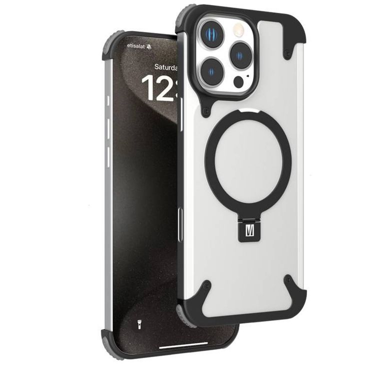 كفر حماية Levelo Metallo المصنوعة من الألومنيوم لهاتف iPhone 16 Pro Max، متوافقة مع MagSafe، مع حامل معدني وزوايا مقاومة للصدمات - أسود