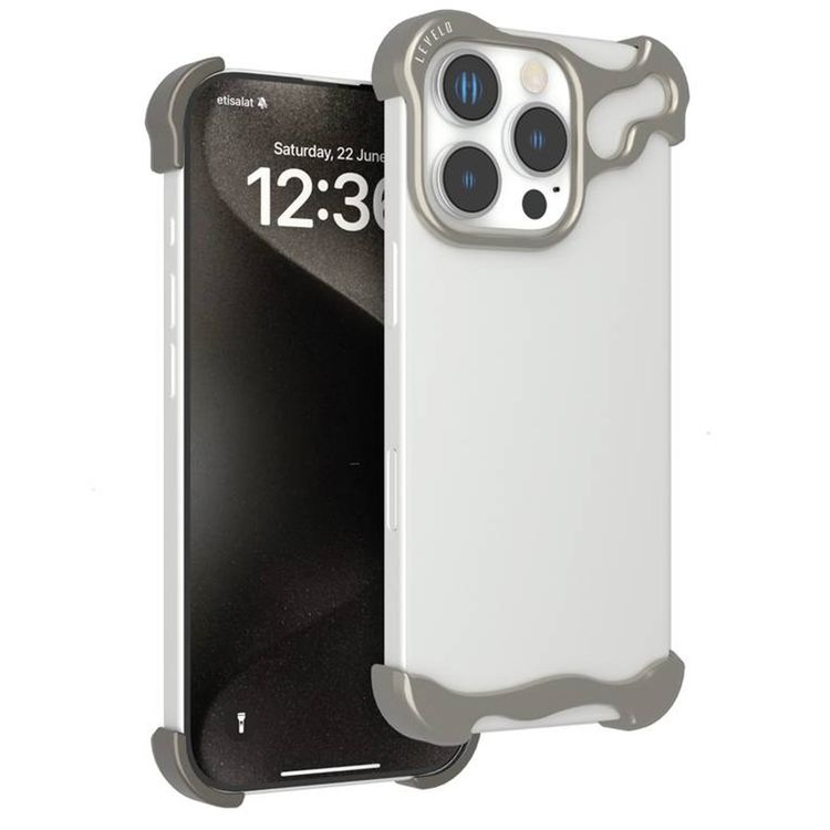 حافظة Levelo Metallo Pro المصنوعة من الألومنيوم لهاتف iPhone 16 Pro Max بزوايا مقاومة للصدمات، مادة متينة، سهلة التركيب، قبضة مريحة وآمنة - تيتانيوم