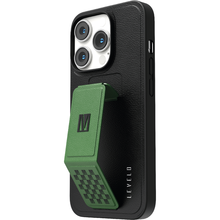 غطاء ليفيلو مورفيكس جريب ستاند من الجلد الصناعي لجهاز آيفون 14 برو - باللون الأخضر المحيطي