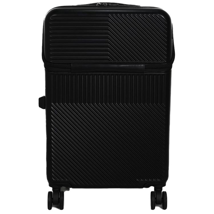 حقيبة سفر ليفيلو أوديسي بغطاء أمامي مفتوح مقاس 22 بوصة، تحمل وزن 30 كجم، مقاومة للصدمات، دوران العجلات 360 درجة، مقبض تلسكوبي - أسود