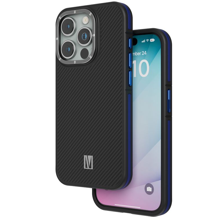 حافظة ليفيلو أوكس كربون لهاتف آيفون 15 برو ماكس، زوايا معززة مع حماية من الهواء، متوافقة مع ماج سيف، حواف مقاومة للصدمات، مقاومة للخدش 3H، إطار مرتفع - أزرق