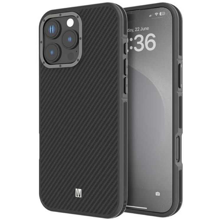 حافظة ليفيلو اوكس كاربون لهاتف ايفون 16 برو ماكس، متوافقة مع ماج سيف، طلاء غير لامع، مضادة لبصمات الأصابع - اسود