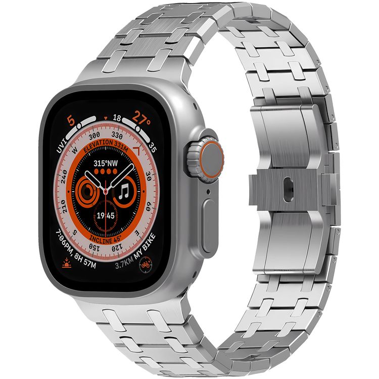 سوار ساعة Levelo RoyalLink من الفولاذ المقاوم للصدأ، حزام قابل للتعديل، مضاد للحساسية مع أداة تعديل - فضي