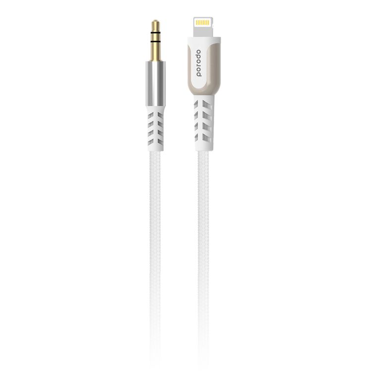بورودو كابل إضاءة إلى AUX بطول 1.2 متر، مقاوم للتشابك، متوافق عالميًا، جاك صوت 3.5 مم، قابس وتشغيل، مضفر - أبيض