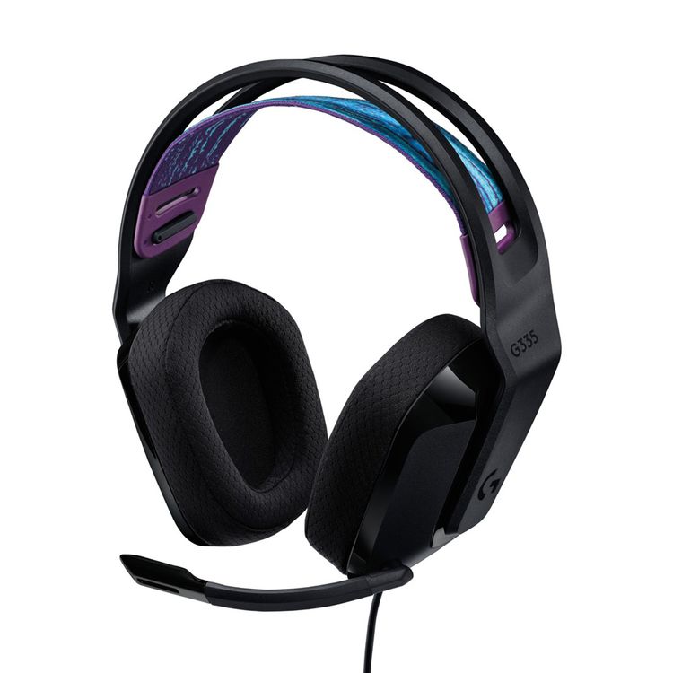 سماعة الألعاب السلكية Logitech G335 بصوت واضح، وملاءمة قابلة للتعديل، وتحكم متكامل، ووسائد إسفنجية ناعمة وجيدة التهوية - أسود