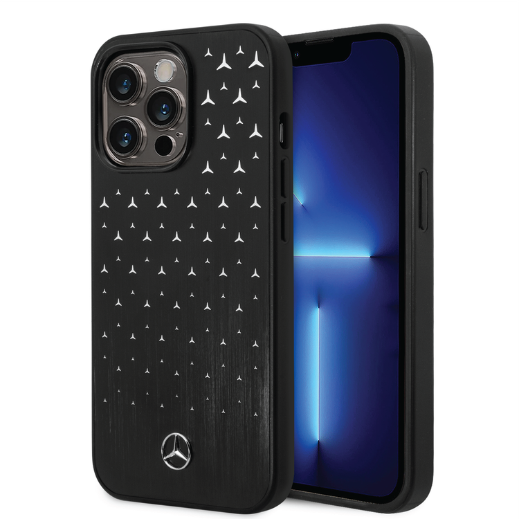 Mercedes-Benz Aluminum Case with Star Pattern Bumper ProtectioniPhone 14 Pro Compatibility - Black