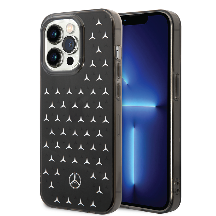 Mercedes-Benz Double Layer PC/TPU Case with Large Star Pattern iPhone 14 Pro Compatibility - Black / Silver