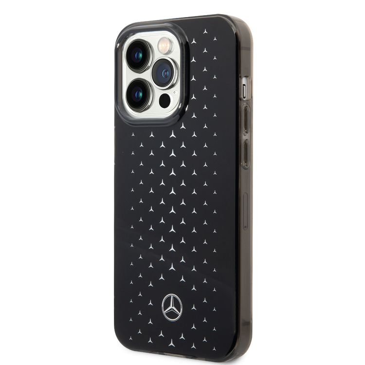حافظة مرسيدس بنز بطبقة مزدوجة من البولي كربونات/البولي يوريثان اللدن بالحرارة مع نمط نجمة كبيرة متوافقة مع هاتف iPhone 14 Pro - فضي