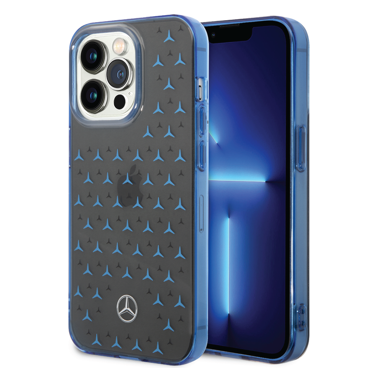 Mercedes-Benz Double Layer PC/TPU Case with Large Star Pattern iPhone 14 Pro Compatibility - Black / Blue