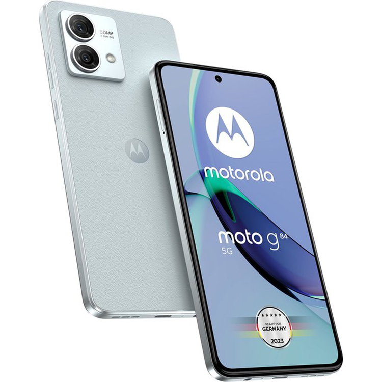 هاتف موتورولا موبيليتي موتو G84 إصدار 5G TRA، شاشة 6.5 بوصة FHD+، كاميرا مزدوجة 50 ميجابكسل، ذاكرة الوصول العشوائي 12 تخزين 256 جيجابايت - أزرق مارشميلو
