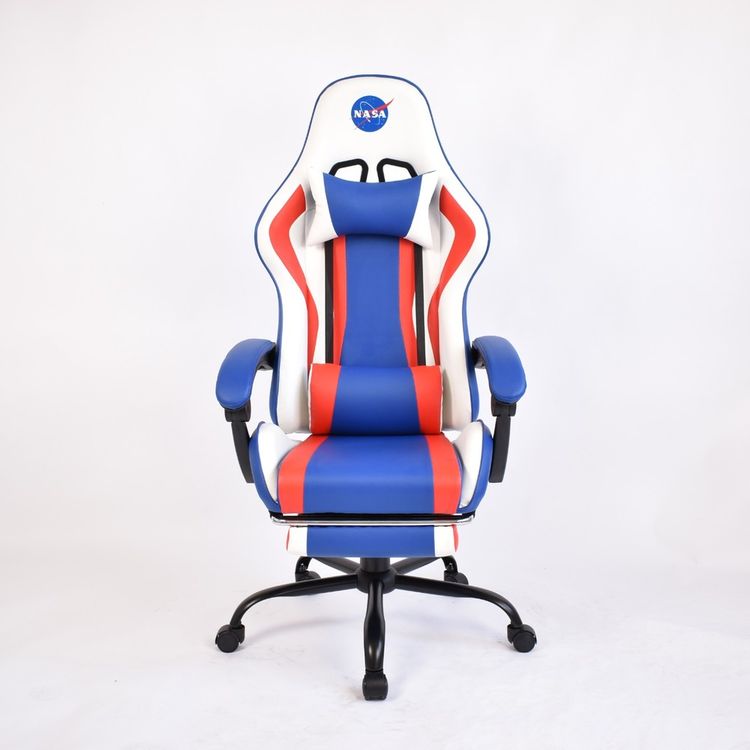ناسا كرسي ألعاب ديسكفري ، جلد صناعي ، ارتفاع قابل للتعديل ، إسفنج عالي الكثافة ، آلية إمالة - أبيض / أزرق / أحمر