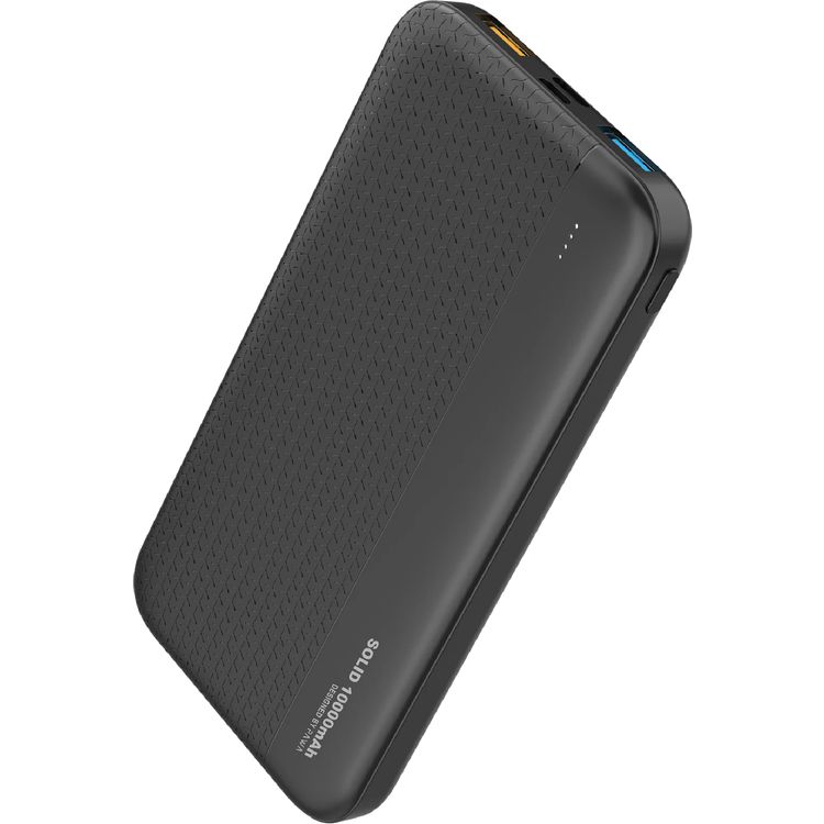 بطارية احتياطية صلبة من PAWA بسعة بطارية 10000 مللي أمبير في الساعة، منفذ USB مزدوج A، شحن سريع متزامن، حماية ذكية، خفيف الوزن ومحمول - أسود